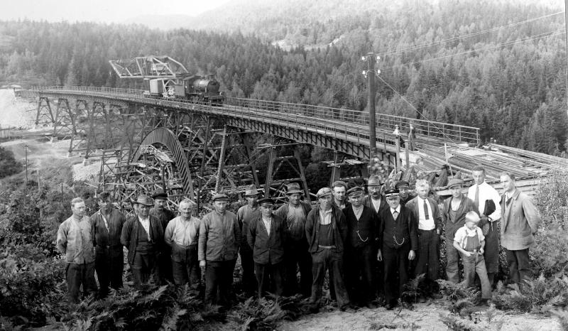 Mannen i jernbaneuniform er Anton Hansen Arebrekke Amundsen fra Aremark. Han var med på åpne Bergensbanen. Han er bestefar til Erik Grinderud (f. 1941). Bildet tatt ca 1900.