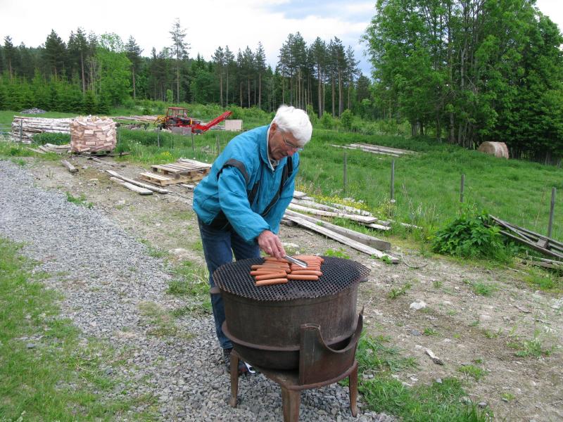 Reidar Halden (dugnadsleder) griller pølser under "kranselaget".