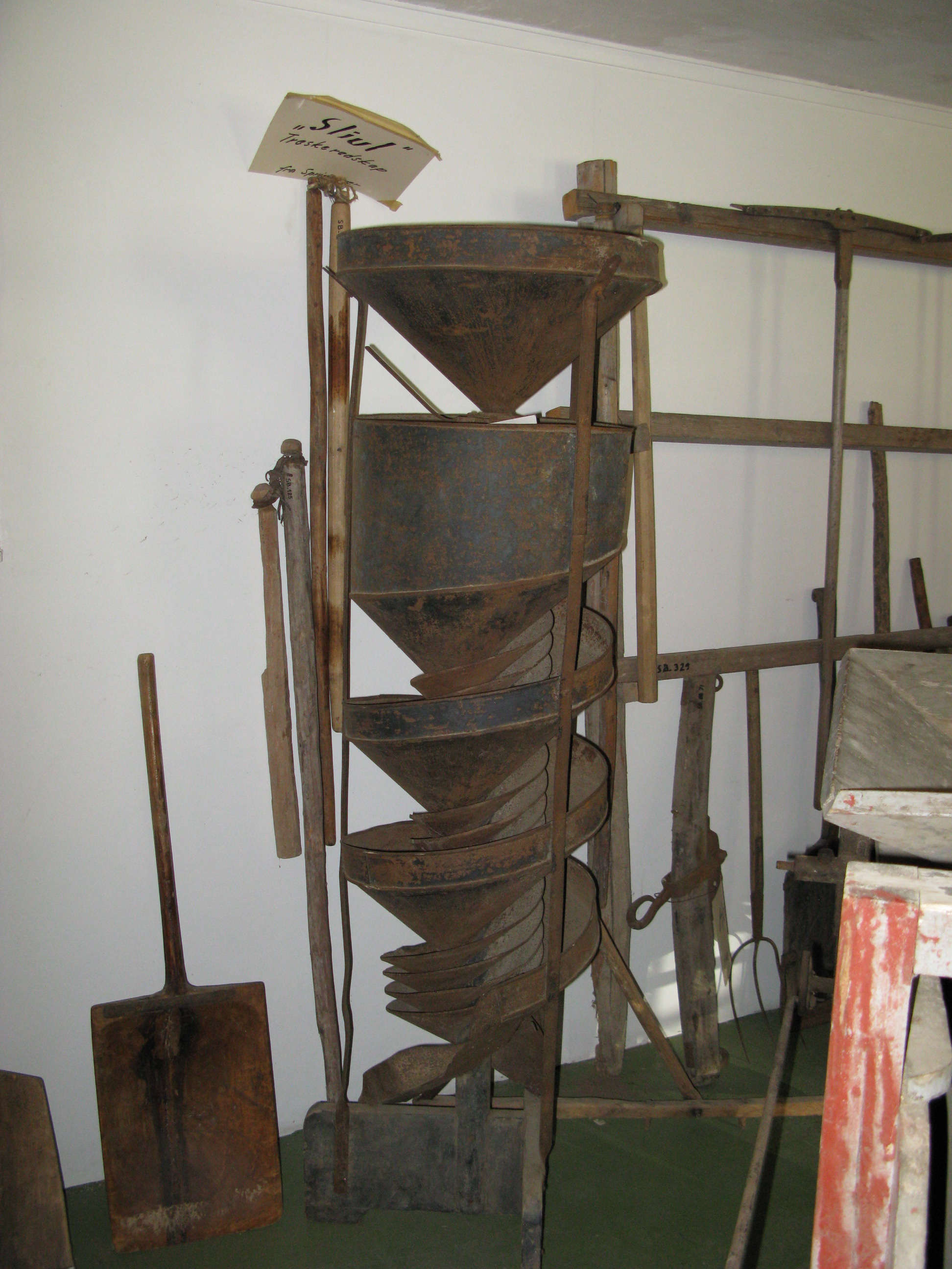 Triør som ble brukt til å skille erter og havrekorn fra hverandre etter at de ble "samhøstet" fra en erte- og havreåker. Sentrifugalkraften førte til at erter og havrekorn ble skilt fra hverandre på vei ned triøren.