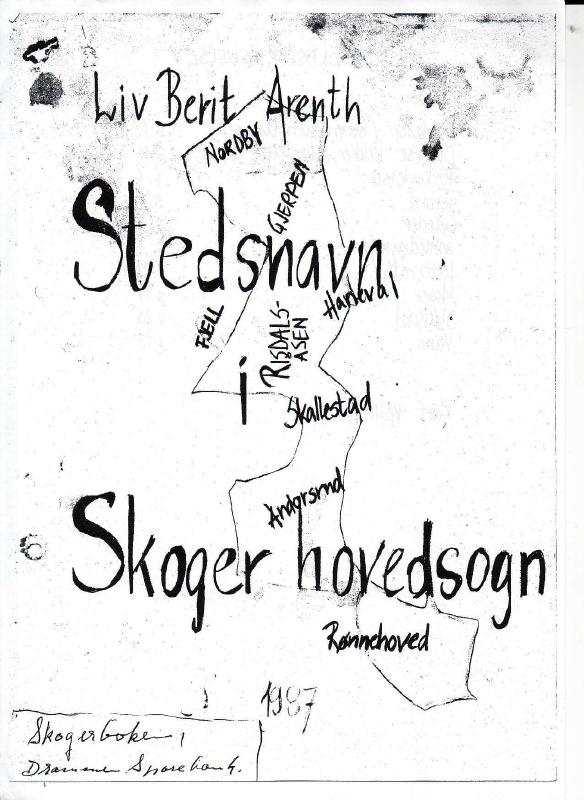 “Skoleoppgave om stedsnavn i Skoger av Liv Berit Arenth 1987,” Skoger og Konnerud historielags bildesamling, besøkt 26. februar 2026, https://skhist.nettsidetesting.no/items/show/2.
