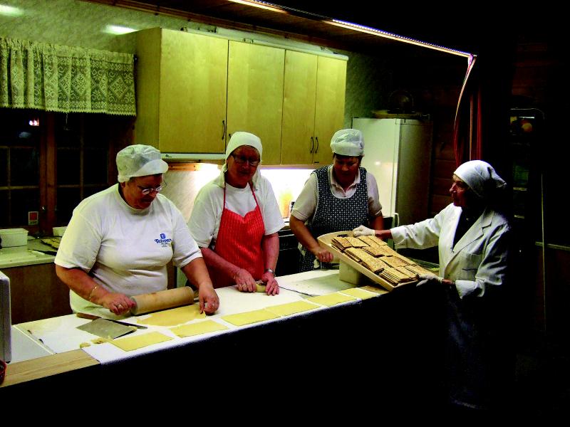 Bakstekonene i full sving på Skalstad Landhandel med julebaksten som skal selges til Jul. Fra v.: Anna Marie Bergli, Grete Hansen, Jorunn Larsen og Berit Valstad.