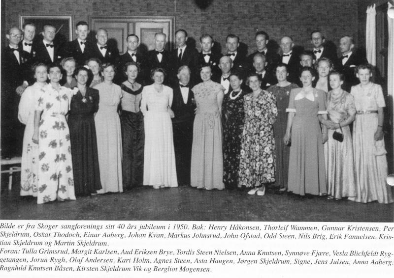 “Skoger Sangforening 40 års jubileum 1950,” Skoger og Konnerud historielags bildesamling, besøkt 27. februar 2026, https://skhist.nettsidetesting.no/items/show/2228.