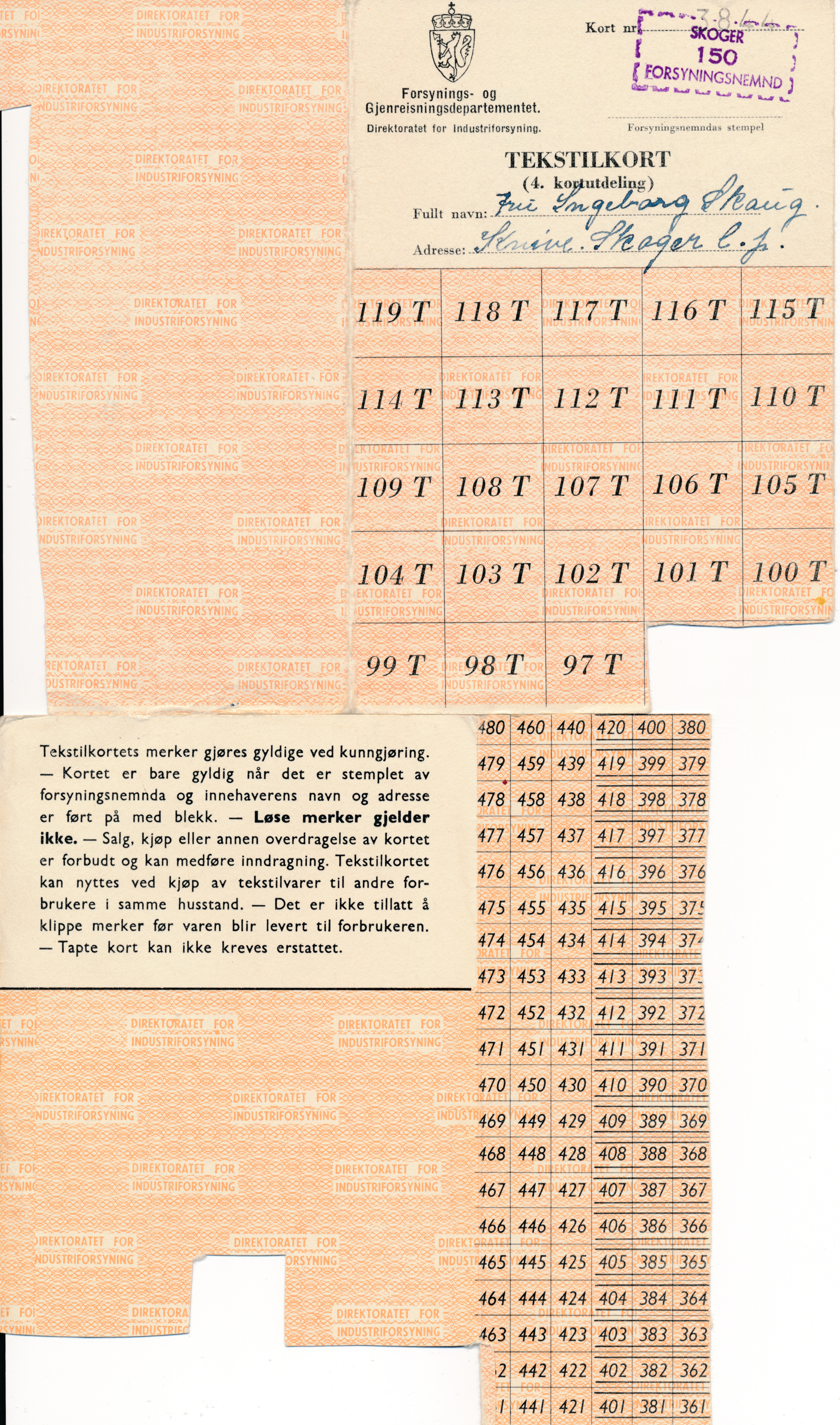 “Rasjoneringskort for tekstiler,” Skoger og Konnerud historielags bildesamling, besøkt 26. februar 2026, https://skhist.nettsidetesting.no/items/show/226.