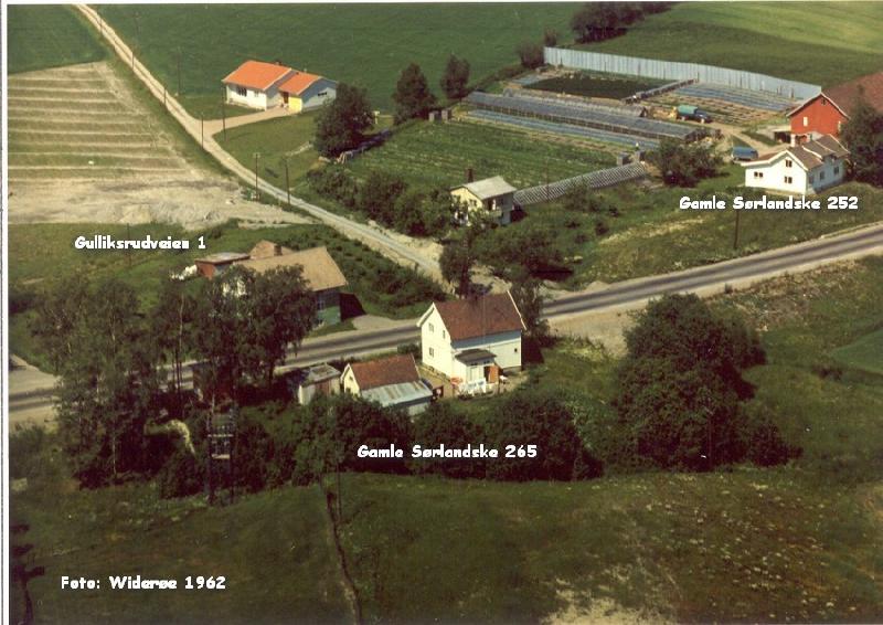 Bakeri som i 1930 ble startet i Naglørengården på Lindum. Nedlagt på 1950-tallet. Nå bolighus på adresse Gulliksrudveien 1. Foto: Utklipp fra Widerøes flyfoto 1962