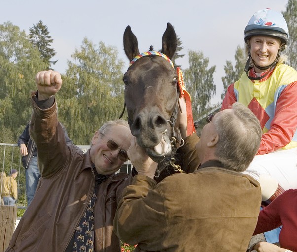 Øvrevoll 17.09.2006 Marie Fretheim vinner Breeders Prize Sprint med Yorkshire Lad for Stall Patchwork og trener Jacob H Fretheim dy.