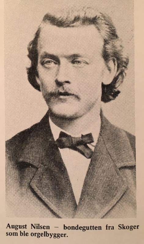Orgelbygger August Nilsen ( 1842 - 1885 ) , sønn av Antonette Olsdatter Aaserud (1807-1851) født på Vestre Aaserud i Skoger. August vokste opp hos sin morfar Ole Augustinussen som eide Andorsrud, ble etterhvert lærling hos det kjente Brantzeg Orgelbyggerverksted i Christiania. Etter 5 års studieopphold hos orgelbygger Sondreck i Køln, kom han til Drammen i 1875 og startet sitt eget orgelbyggeri August Nilsens Orgelfabrik, med en arbeidsstokk på 12 mann helt fra starten. Nilsen ble ansett for å være en av landets fremste orgelbyggere. Augustinus Kopperud, som var Skoger Sparebanks stifter, var hans kjødelige onkel, så det er rimelig å anta at han ikke var helt likegyldig overfor sin søstersønns utvikling. August Nilsen stilte strenge krav til den håndverksmessige utførelse av hver enkelt av de tusentalls deler som et orgel består av. Orglene hans betegnes med rette som bunnsolide. Fra sitt opphold i Tyskland hadde han med seg det såkalte «kegleladesystem» som han siden anvendte i alle sine orgler. Nilsens orgel var installert i Skoger nye kirke ved åpningen i 1885. Han leverte et femtitalls orgler til kirker rundt i hele Norge, blant annet Oslo Domkirke. Etter Nilsens død ble selskapet overtatt av hans enke, Petrine. Firmaet byttet senere eiere og fikk fra ca. 1950 navnet J. H. Jørgensens Orgelfabrikk.