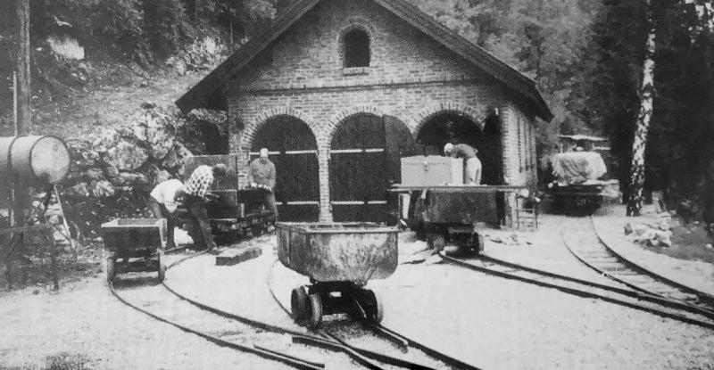 Lokomotiv og vognhall ved kontaktstollen i Baklia