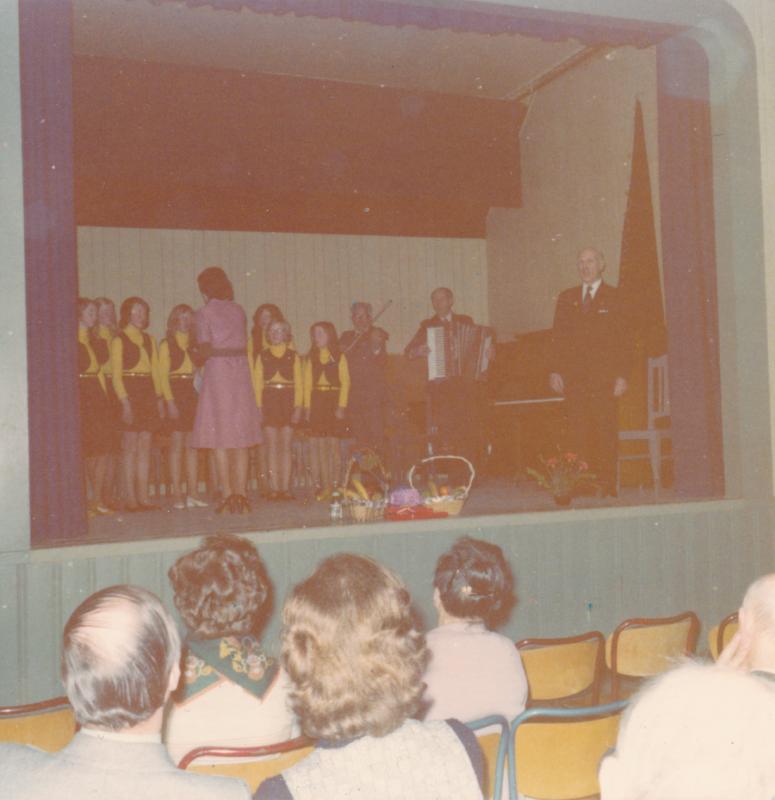 Historielagets første medlemsmøte på Skogvang. 27. Mars 1976.