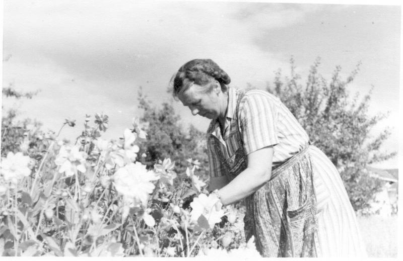 Emma Haveraaen f. Horgen(1903- 1993) arbeider i sin praktfulle hage hjemme på Granheim (40/15). på Ingvaldsåsen. Emma var gift med Harald (1899-1966). Var mor til Sverre (1930), Oddvar (1931), Bjørg(1934) og Hans(1939) Hun var ivrig med i Skoger sangkor og Skoger Sanitetsforening. Var også en tid medlem i Skoger menighetsråd.