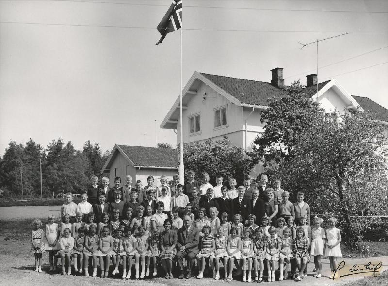Ingvaldsåsen skole, lærere og elever den aller siste skoledag i skolens historie, juni 1962. Med forbehold om feil - 1. rekke f.v.: Anita Jakobsen, Inger Unelsrød, Hanne Unelsrød, Tone Langvassbråten, Tora Unelsrød, Unni Karlsen, Birgit Sand, Liv Eriksen, lærer Kari Gjesmoe, lærer Andreas Ertzeid, Astrid Lehn, Stine Fjære, Elin Mathisen, Liv Karlsen, Karin Trolsrud, Ragnhild Karlsen, Mari Mehlen, Gunn Haugen. 2. rekke f.v.: Bente Markussen, Marit Amundsen, Ingjerd Moen, Inger Gundesø, Inger Mathiesen, Gunn Treholt, Lise Kristiansen, Bodil Knutsen, Bodil Sandbekk, Anne Fjære, Torild Larsen, Helga Hansen, Gerd Karlsen, Liv Kristiansen, Anne Margrethe Drolsum, Turid Mathiesen, Ingjerd Hoven, Else Marie Knutsen, Mona Solbakken, Tove Bjørnerud, Turid Halgren, Marit Markussen, Inger Johnsrud, Tove Amundsen. 3. rekke f.v.: Bjørn Moen, Jan Langvassbråten, Terje Solbakken, Erik Kristiansen, Tormod Emberland, Tor Bjørnerud, Johnny Kortvedt, Knut Lehn, ukjent dansk(?) gutt, Rolf Eriksen, Erik Strand, Rolf Borgenhaug, Bjørn Otto Kristensen, Arnfinn Bråthen, Knut Andersson, Svein Arild Åserud. 4. rekke f.v.: Torkild Kåsa, Villy Kortvedt, Ove Mathisen, Torgrim Eriksen, Håvard Bolstad, Ragnar Lehn, Anders Drolsum, Trond Kopperud, Stein Erik Bjørnerud, Lars Erik Mehlen, Gunnar Johansen, Dag Gundesø, Knut Kjellevold, Bjørn Fjære, Ole Robert Solberg.