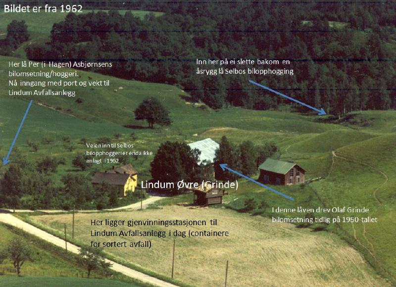 Her på jordet langs veien ligger Lindum miljøavfallsstasjon i dag. Siste eier før Drammen kommune overtok hele eiendommen til søppelfyllplass var Hilda Grinde, født Jordbrekk, enke etter Olaf Grinde. På 1950-tallet drev Olaf Grinde med kjøp og salg av biler fra driftsbygningen på gården. På 1960 tallet ble det etablert to bilopphoggerier på eiendommen (se alternative filer). Omtale i Norske Gårdsbruk 1947: