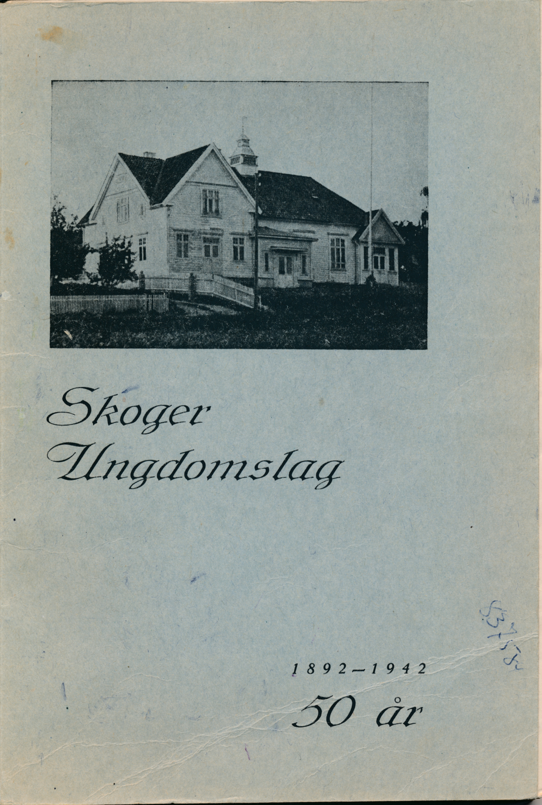 Heftet ble utgitt i 1942 ved Skoger Ungdomslags 50-årsjubileum. Redaksjonsnemnd: Knut Engen, formann. Gudbrand Båsen, kasserer. Aslaug Lunda. Hans Skjeldrum, formann i Ungdomslaget. Ansvarlig redaktør: B. Jordbræk. NB! Sidene i heftet kan ikke vises direkte. Orginalfila må lastes ned og så åpnes på egen maskin. I Windows 10 virker det slik: Klikk «Last ned», det kommer opp et avlangt vindu nederst på skjermen, vent til nedlastingen er ferdig og klikk «Åpne». I andre operativsystem vil dette i prinsippet være omtrent likt, men se noe annerleds ut.