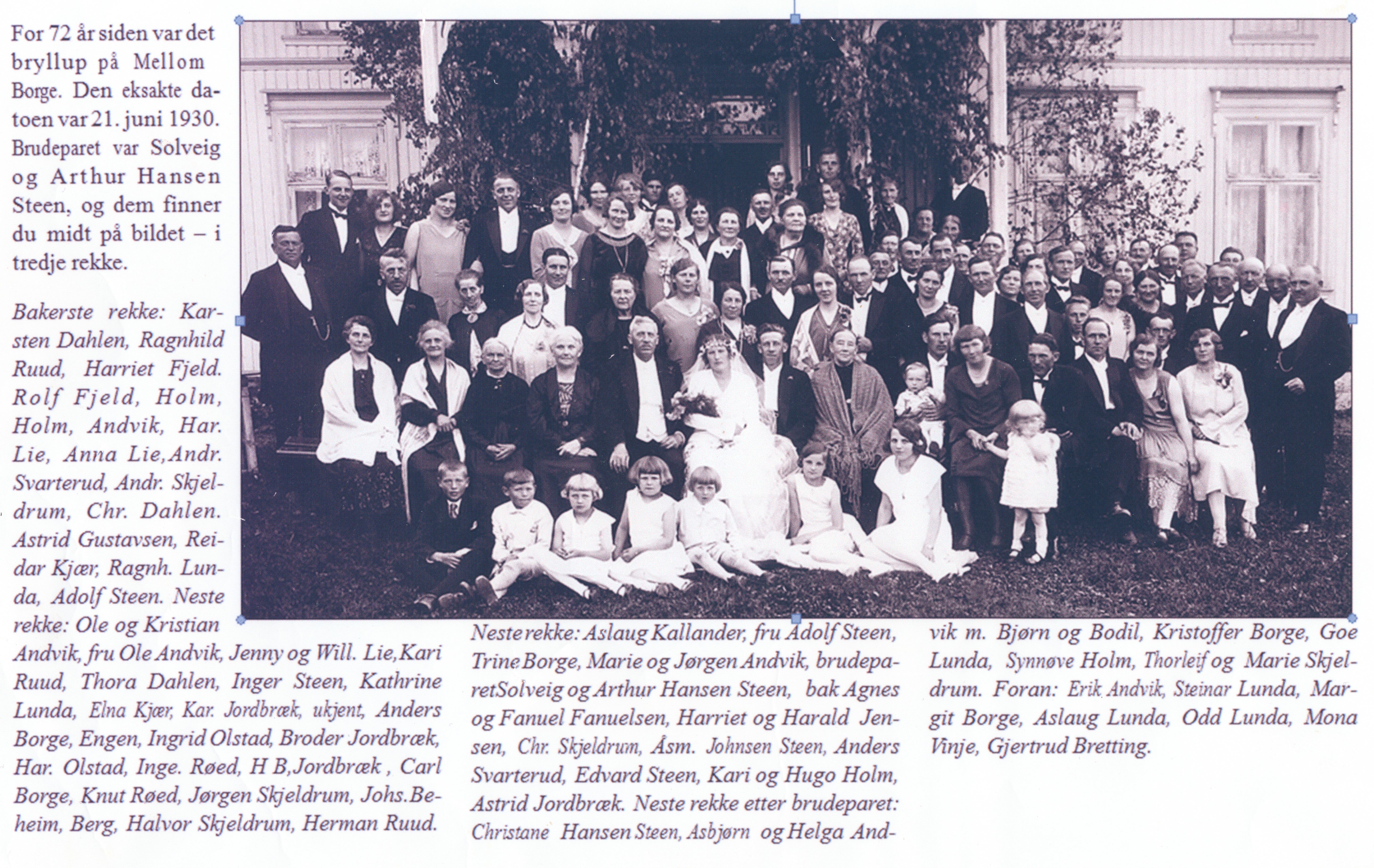 “Bryllup på Mellom-Borge 1930,” Skoger og Konnerud historielags bildesamling, besøkt 27. februar 2026, https://skhist.nettsidetesting.no/items/show/2930.