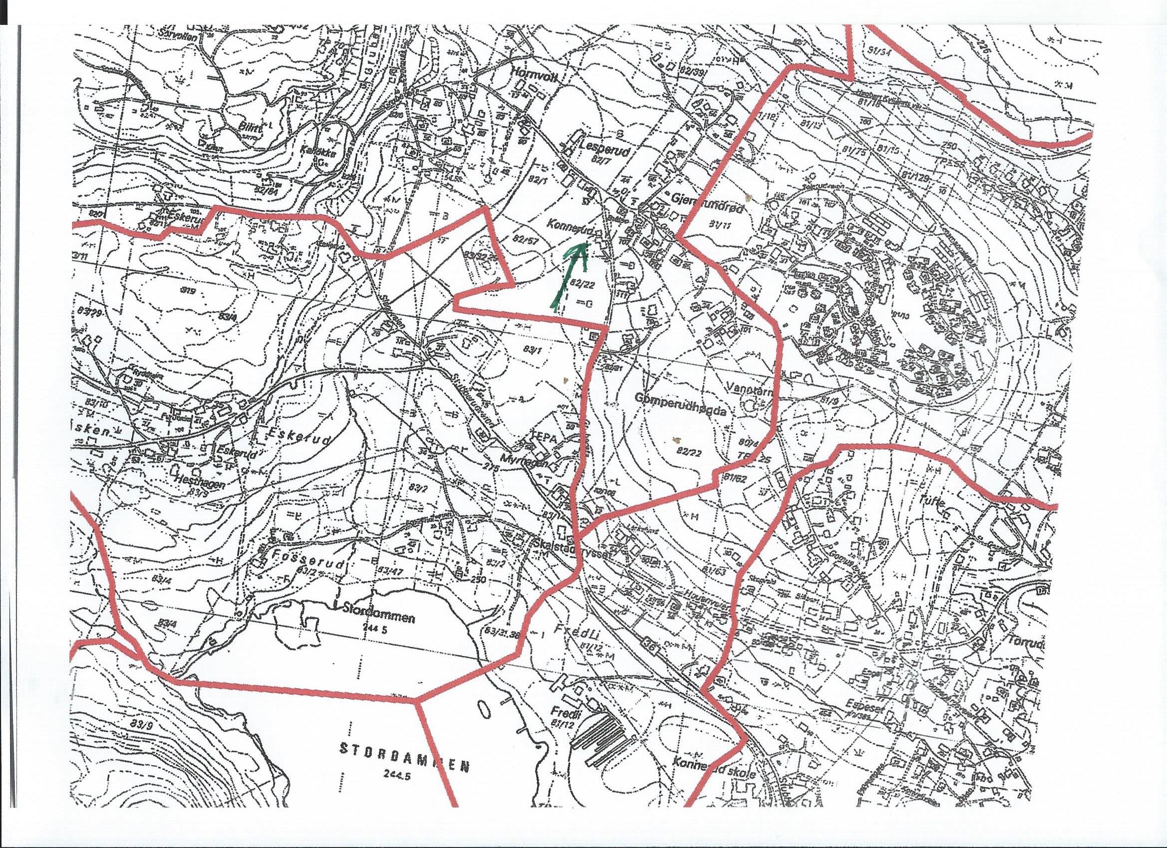 Bildet er skannet fra glassplate og gitt Skoger og Konnerud Historielag av Rune Moseng. Fotograf/tidligere eier: Gunnar Aasgaard senior. Bildet er tatt omkring 1910. Konnerudkollen hoppbakke som lå omtrent midt i bildet, var midlertidig nedlagt på grunn av gruvedriften. Konnerudkollen var en hoppbakke som lå i åsen ved samme navn på Konnerud i Drammen. Bakken ble blant annet brukt under hovedlandsrennet i 1926 og flere landsrenn (nasjonale renn). Den første hoppbakken i Konnerudkollen ble bygd av Drammen Skiklubb og tatt i bruk i 1899. Bakken ble nedlagt alt i 1905 på grunn av gruvedriften i området. Etter at gruvedriften ble nedlagt, bygget Strømsgodset Idrettsforening opp igjen bakken, og den ble innviet i 1921 og ombygd i 1923. Per Runar Thoresen hadde sitt barndomshjem i dette området. Han forteller dette: "Våningshuset i forkant (til høyre) er idag (2016) Grubegt. 21 og var mitt barndomshjem. Min far kjøpte det på auksjon for 7000 kr i 1934 av Andreas Olsen og senere er det både endret og påbygget. Min bror eier det idag. Låven til høyre er på naboeiendommen “Jensrud” og låven lå helt inntil krysset Grubegt./Gomperudgt. Her bodde Helene Knutsen fra Viulsrud i Skoger (død 1985-90 år) Låven er revet. På side 527 i Skogerboken finnes et bilde tatt fra motsatt kant (se alternative filer). Det hørtes jo litt “blærete ut” , så vi var forsiktig med å “rope det ut”, men all kommunal og annen post var til Konnerud Gård. Bekreftelsen finner du på et kartutsnitt ved den grønne pilen ( se alternative filer). Den store “gamle Konnerud Gård” lå jo lenger oppunder Konnerudkollen, men jeg tror kanskje at deler av bygningen der vi bodde var flytt fra gammelgården og dermed fikk navnet Konnerud Gård? (kun antakelse). Det fulgte ikke verken formue eller adelige titler med på kjøpet så langt jeg vet. Grev Thoresen gav vel neppe noen gjenklang. På side 510 i Skogerboken finner vi at min trippeltippoldefar John Pedersen var Pukkstiger ved verket, så kanskje han i det minste så greven på avstand?"