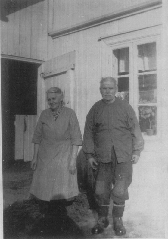 Besteforeldre til Helge Furuvold Julianne og Olaf Haveråen fotografert utenfor huset sitt på Haveråen