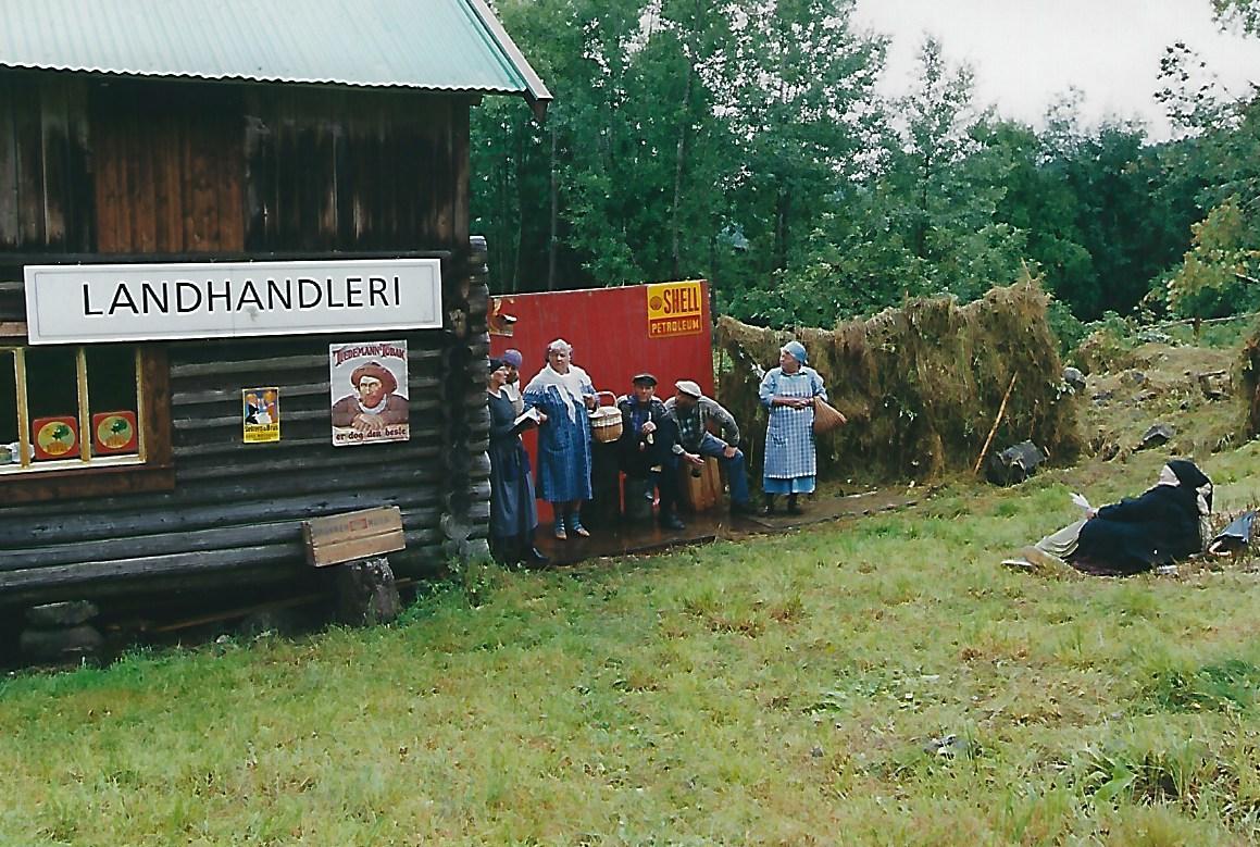 Tekst: Per Runar Thoresen Handelsmenn- Dagdrvere og Sladrekjerringe Spilt på Rønnehue aug. 2000. Forfatter: Kai Roger Olsen. Også spilt på Gulskogen Gård samme året