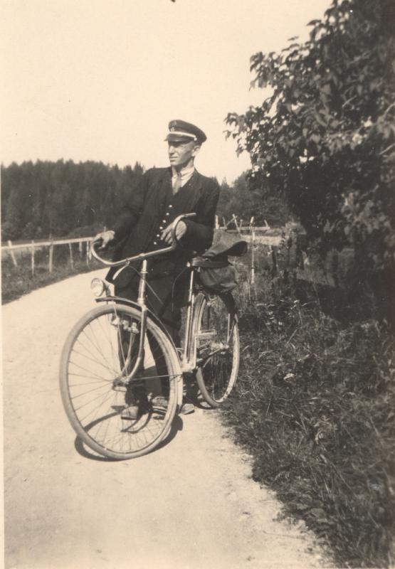 Postmann Eugen Wølner med sin sykkel