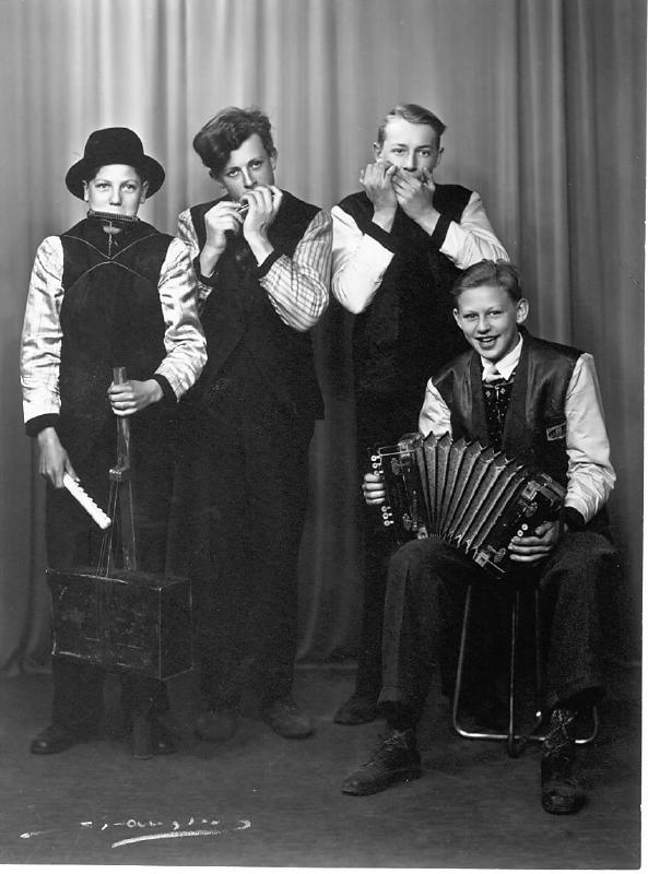 De Navnløse var et orkester som hadde sitt opphav på Konnerud, Orkestret besto av følgende personer.: Erling Jakobsen, Jørgen Prøis, Ivar Tveten og Torbjørn Tollefsen Bildet er tatt av fotgraff Spangberg. Gutta hadde ingen uniform. Men konfirmasjonsdressen gjorde nytta. Jakkene ble vrengt , derfor er armene hvite på g.a. de var foret med silke.