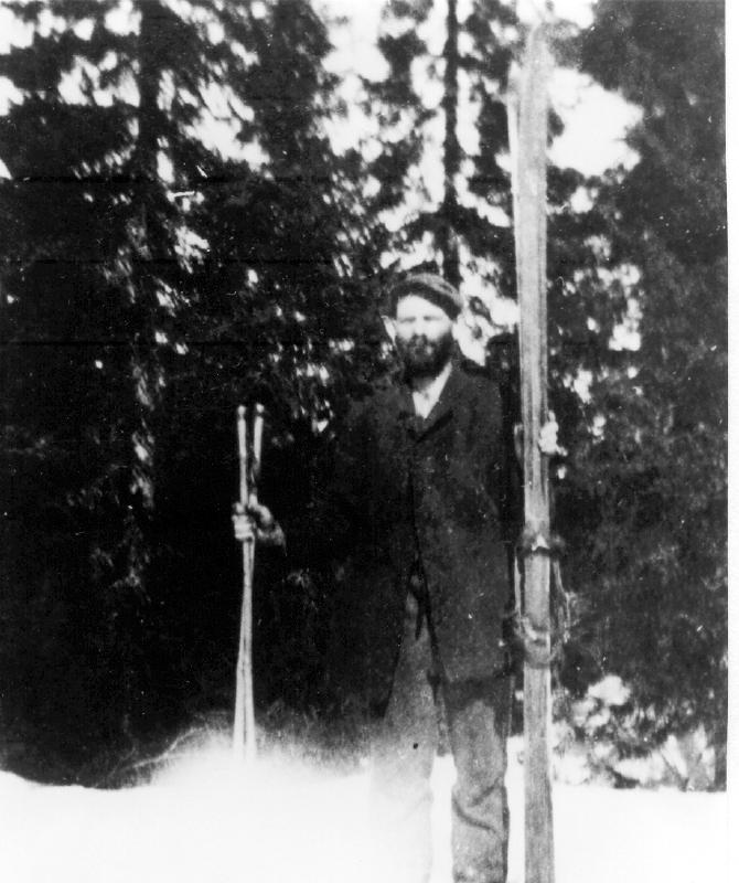 Andreas Ellefsen Dammyr m/ski og staver. Legg merke til de lange skiene.