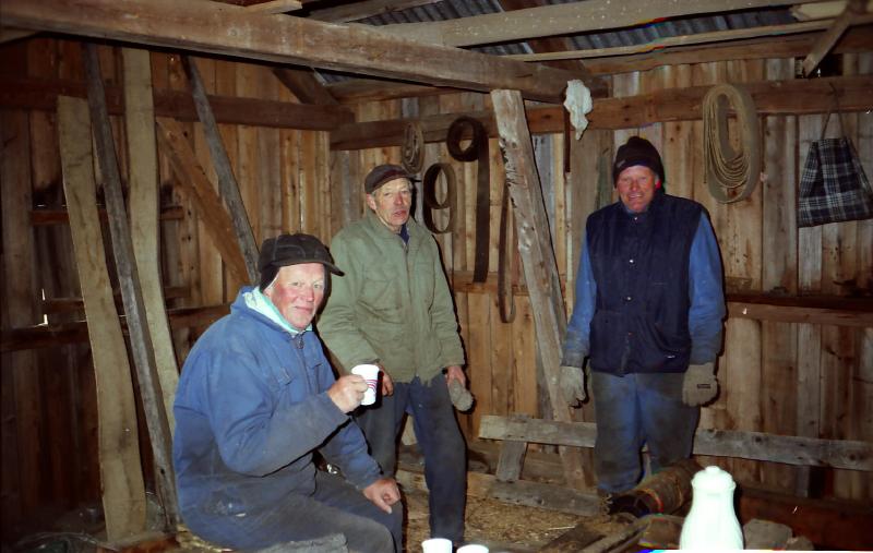 Fra v. Per Skjeldrum, Harald Johansen (Springover) og Jørgen Skjeldrum Den siste dagen det var skur på Skjeldrumsaga