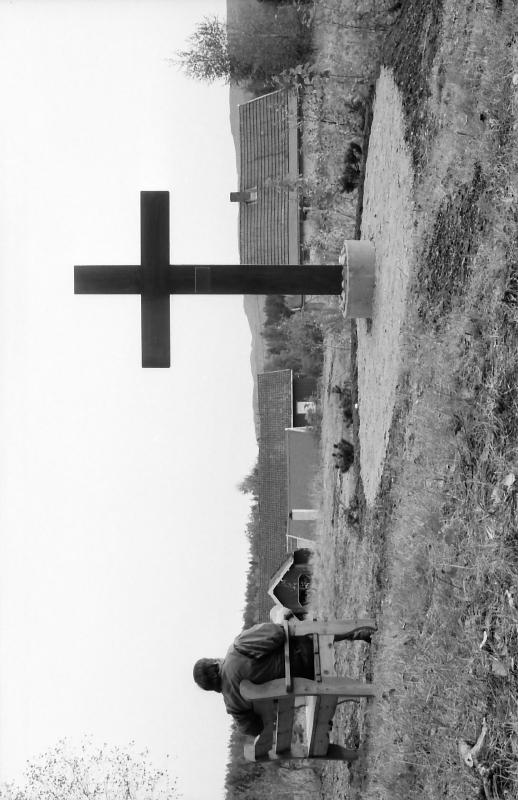 Kors som ble reist på tomta til den nye kirken på Konnerud etter at det 11. juni 1989 var bestemt hvor kirken skulle bygges. Korset sto klart til friluftsgudstjeneste med biskop Osberg på kirketomta 25. august 1991. Korset sto frem til byggearbeidene ble påbegynt. Grunnsteinen ble nedlagt 12. juni 1994, og det var starten på en byggeperiode på noe over 2 år. Kirken ble vigslet 6. oktober 1996. I bakgrunnen gården Solberg som ble revet.