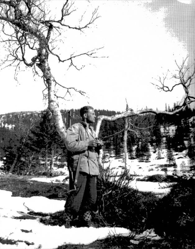 Kåre Berntzen fotografert en av de siste dagene før han ble skutt av tyskerene i slaget på Haglebu. Kåre Berntzen var bror til Arne som var postmester på Konnerud i mange år.