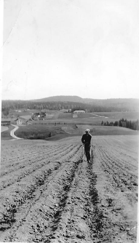 Agronom på Søndre Imjelt (Beheim). Vestbygda skole i bakgrunnen. Sagbakken til venstre. Andorsrudveien slynger seg frem.