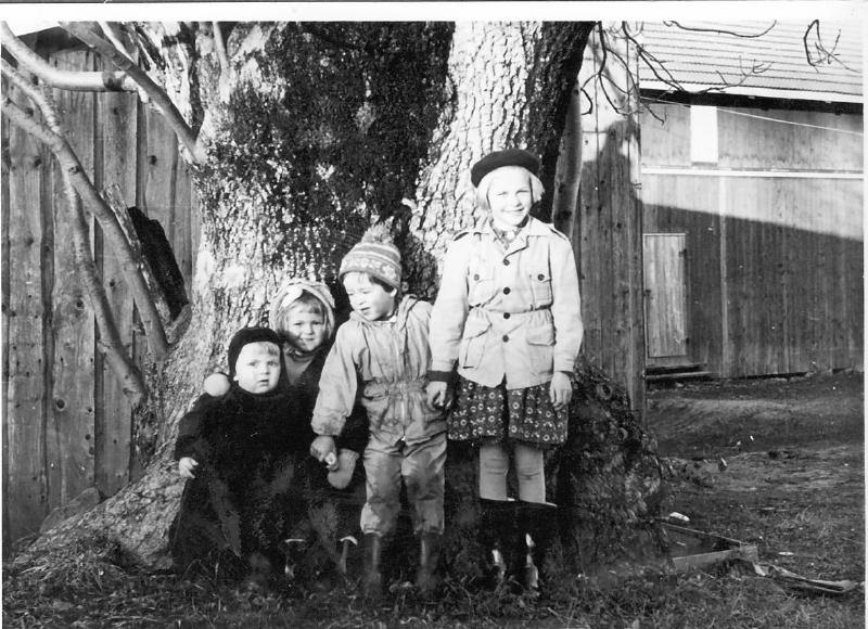 Fra vesntre: Jon Rustand, Liv Bente Torgersen, Liv Rustand, Ragnhild Dahlen Liv og Jon Rustand er barn av Kari og Olaf Rustand. Liv Bente Torgersen(gift med Inge Larsen) bodde på Gramsborg og er datter til Ivar Torgersen som var formann i Konnerud IL i en periode.. Ragnhild Dahlen bodde på Stubberud hvor også bildet antagelig er tatt.