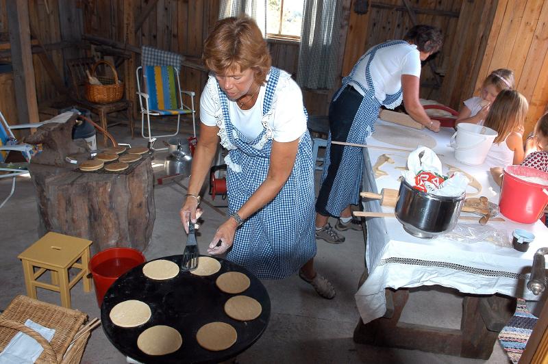 Her baker Gro Lunda lapper og Vigdis Skaug med ryggen til lager flatbrød.