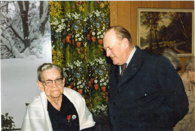Kong Olav i samtale med ??.. på Fredholt sykehjem