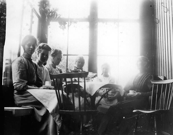 Karen, Aja, tante, Lina Tufte, Agnes Claussen, og fru Samuelsen