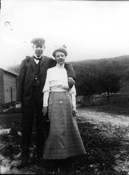 Jørgen og Borghild Johnsen på gårdsplasse på Stormoen