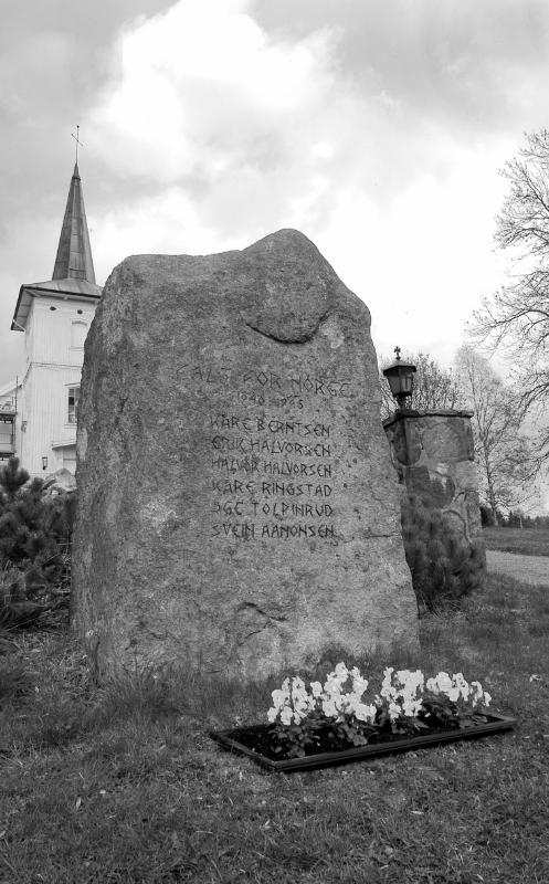 Bautan over de falne i andre verdens krig på Konnerud. Bautan står ved den gamle kirka på Konnerud.