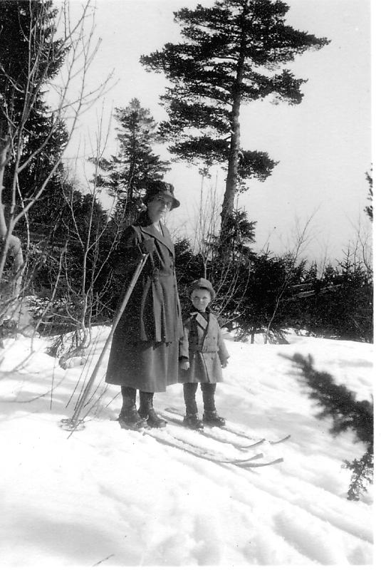 Elise Jensen og Toll på ski i påsken. Toll er 5 1/2 år her. Toll Tollum var sønn til Hans og Elise Jensen.