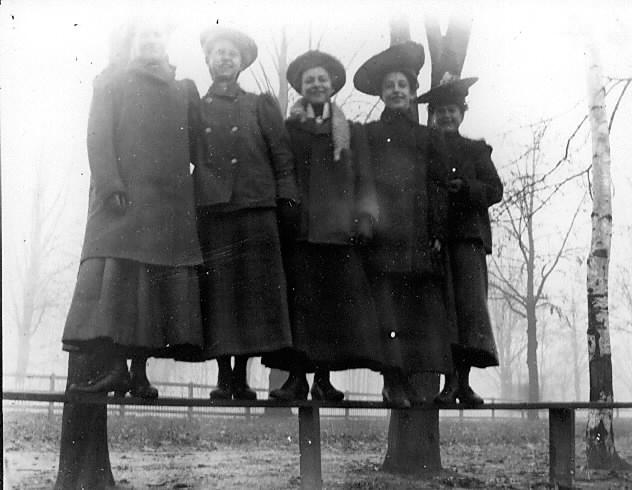 Skolevenninner i parken : Ruth Backstad, Asttid Bergqvist, Margit Fris, ,Gudrun Olsen , Dagny Backer