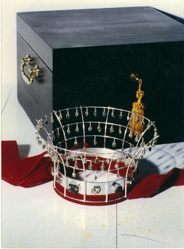 Brudekrone laget av gullsmed Ingrid Iburg fra Nederland, den gang bosatt i Drammen. Litt symbolikk i at det nettopp ble en hollender som utførte arbeidet: Helt fra 1200-tallet har hollenderne hentet tømmer fra det elgamle utskipsningsstedet Kobbervik, som i geistlig henseende lå under Skoger kirke. Mineralene er fra Konnerudgruvene og Øivind Juul Nilsen har plukket dem. Krona inneholder: krystaller, sinkblende, granater, kalkspat, svovelkis og kobberkis. Brudekrona er i Drammen Kommune`s eie og kan lånes ut derfra, men den tilhører Skoer gamle kirke. Sist brukt ved et bryllup i 2009. Noe av teksten er hentet fra artikkel i Drammen Tidende og Buskerud Blad (DTog BB) 21.06.1986 i forbindelse med 175-årsjubileet for Drammen.