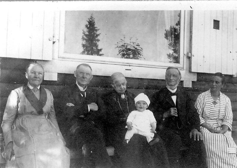Barnedåpen til Toll Tollum (f. 12.12 1920 ) På bildet fra h.:Toll sim mor Elise Jensen ,Foreldre til Hans Jensen, Vieum fra Drammen. Til v .: Foreldre til Elise Jensen.