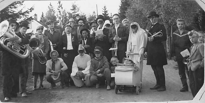 I Svingen ved Konnerud Skole. Fra v.: Kåre Gulhaugen, Torbjørn Nyborg, Torleif Kristensen, Thorbjørn Tolefsen, Hartvig ?. Nils Blixrud, Åge Ravn Hansen, Ragnar Thommassen, Per Tolefsen, Odd Karlsen, Arvid Nordal, Egil Torgersen, Oddvar Warhuus, Egil Kristensen .. Med flere.