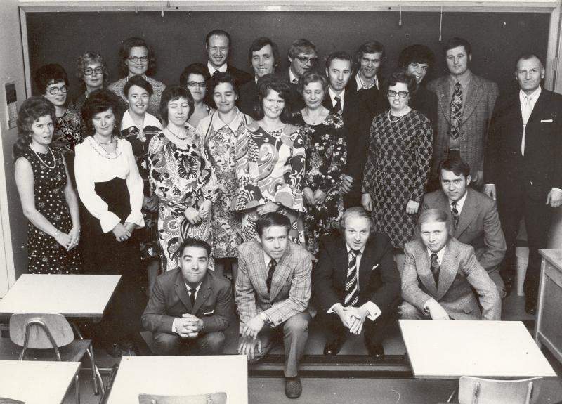 25 år etter skoleslutt: 1. rekke fra v : Tore.Langebro - : Jan Langebro - Dag Pettersvold - Kjell Dalby - Ole Kristian Mortensen - 2 rekke.: Berit Blomholdt - Åse Thorrud - Turid Hybertsen ( Paulsen ) - Bjørg Wiig (Johansen) - Åse Pedersen. (Missa ) - Torun Wisting (Mangen) (Haug) 3 rekke.: Dagmar Halvorsen ( Skrenes ) - Bjørg Skjelsbekk ( Wike ) - Jorun Skramstad - Ranvei Møller - Liv Lillemoen Bakerst : Nelly Ek. - Britt Sætrang - Erik Grinderud - - Leif Nordal - Eli Østensen- Hans Jørgen Wisting - Torfinn Bø.