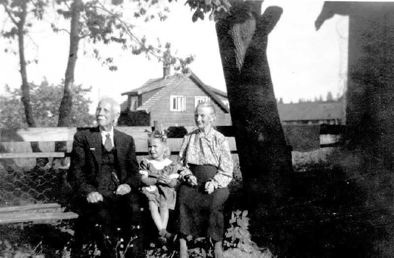Kittil Lie og Jorunn Stubberud ( datter til Henry Stubberud ) , Berte Johanne Stubberud f. Lie Huset i bakgrunnen er Halgeir Treholt sitt.