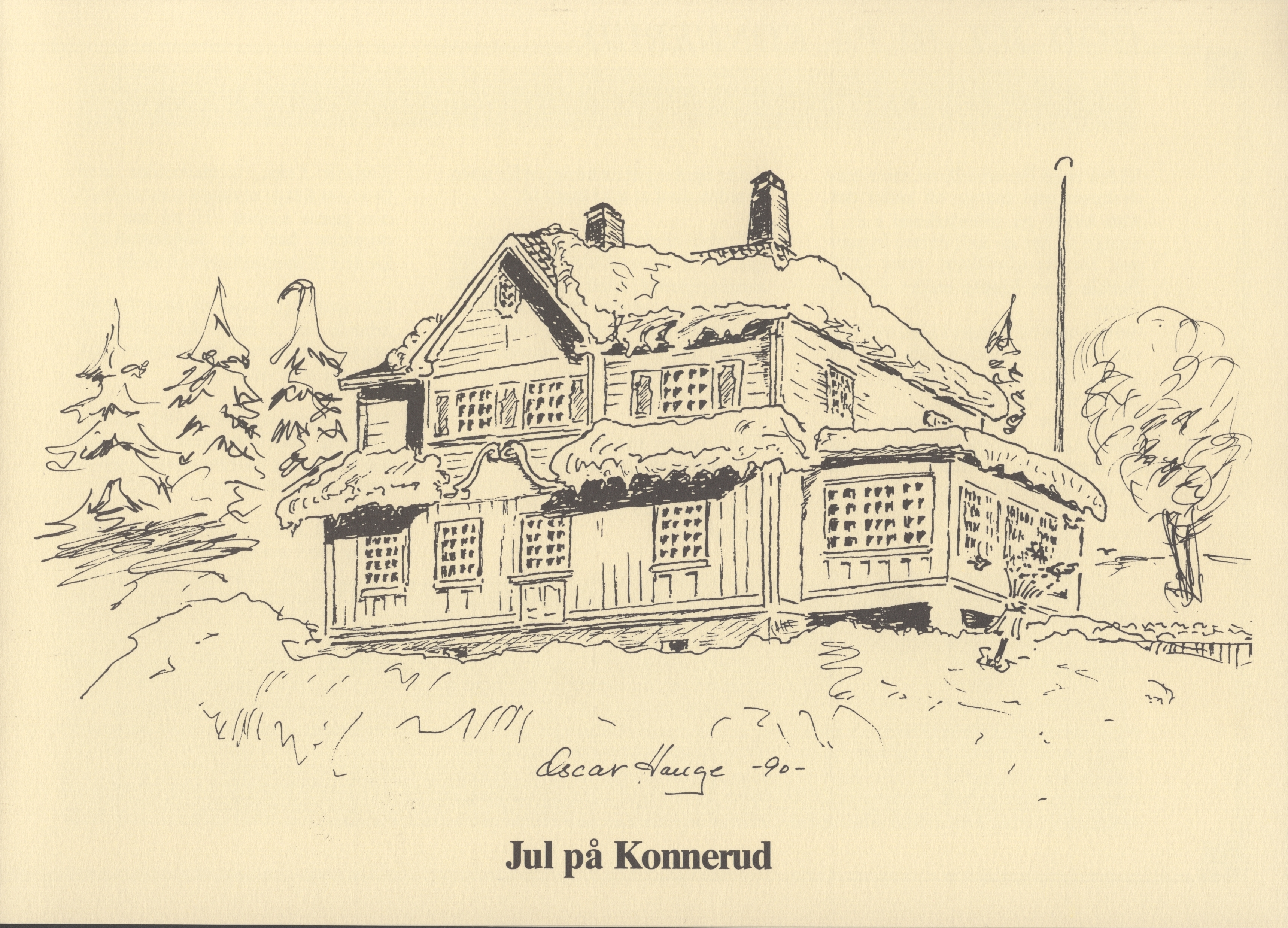 Julemerke, Lions julemerke 1990, Bernås,Tegning av Oscar Hauge