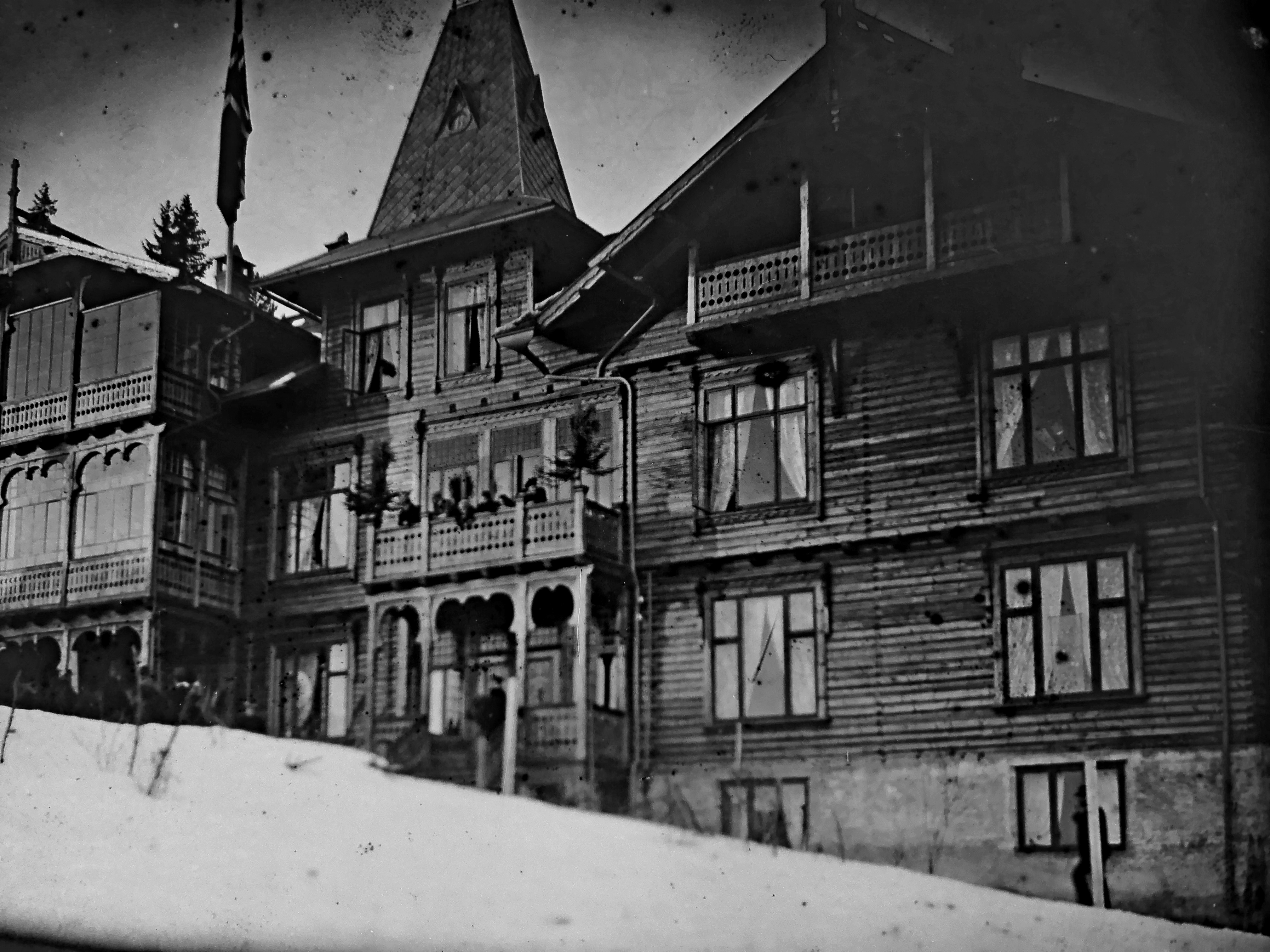 Bilde fra Konnerudkollen Sanatorium fra tidsrommet 1898 til 1920. Orginalen er på glassplate og er eid av Harald Øhlckers.