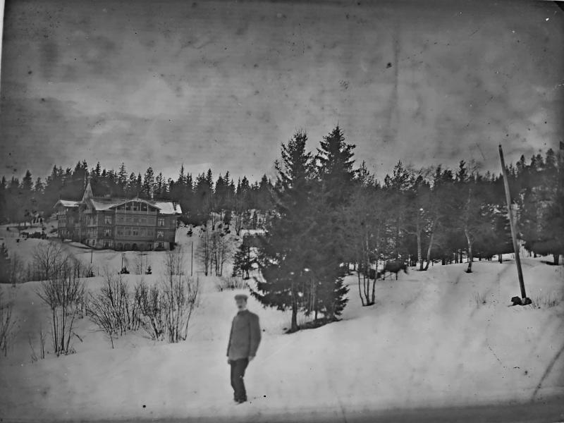 Bilde fra Konnerudkollen Sanatorium fra tidsrommet 1898 til 1920. Orginalen er på glassplate og er eid av Harald Øhlckers.