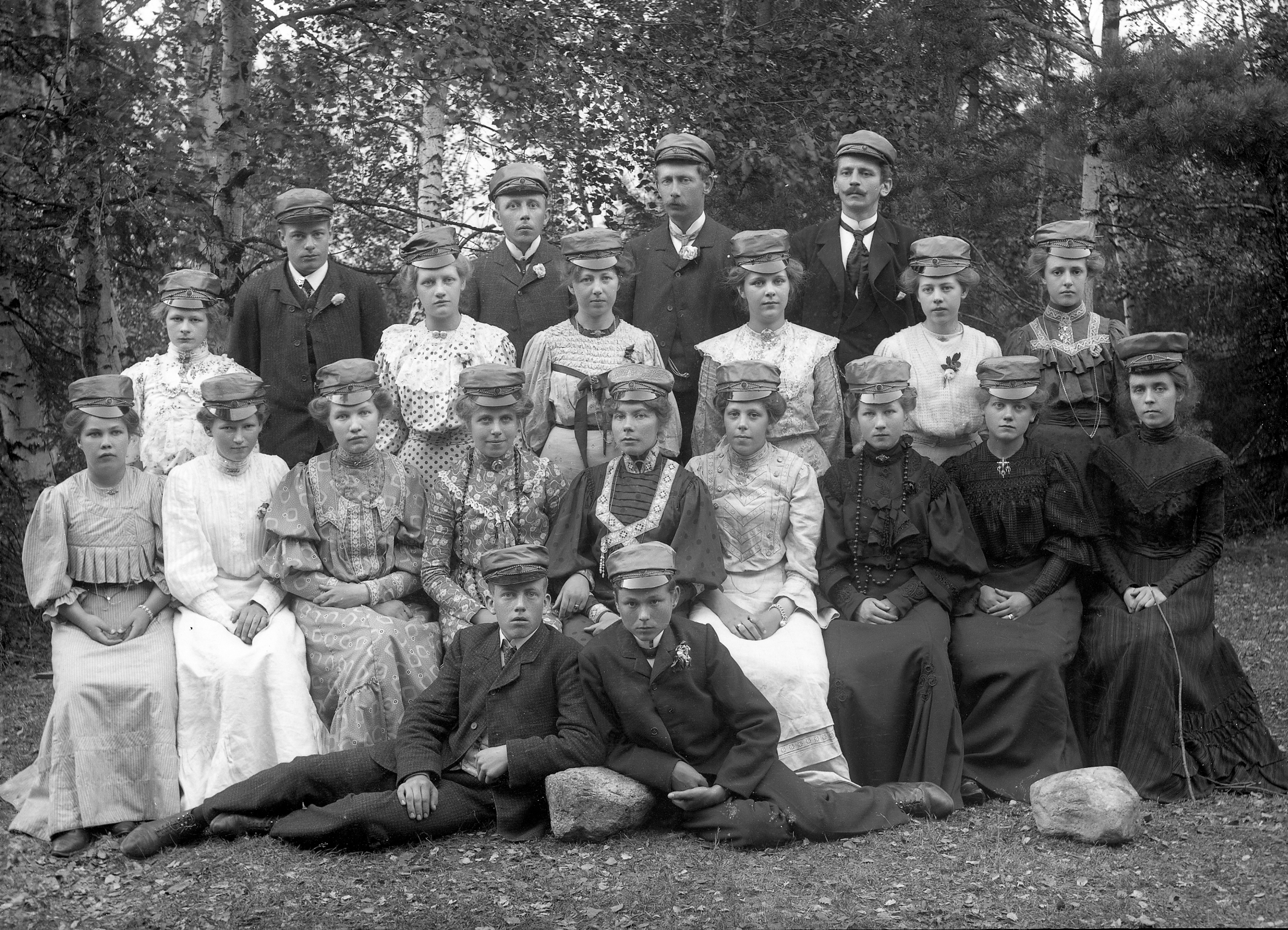 Glassplaten er skannet og behandlet av Fotohuset, Drammen. Sangkoret. Foran sitter Harald Gulbrandsen v. og Harry Nicolaysen h Foreste rekke fra v: Klara Johannesen - Betsy Moen - Inga Aaserud (g. Olsen ) ukjent,- Marthine Brekke (g. Burud )- ukjent - ukjent Kristiane Langum - ukjent - ukjent -. Mitterste rekke fra v: Ukjent - ukjent - ukjent - Gustava Gulliksen ( g. Olsen ) - Herborg Langback - Helga Christensen - Trogstad. Bakerste rekke fra v. Arne Gulbransen - Hans Charlsen - Arnt Aaserud - ukje