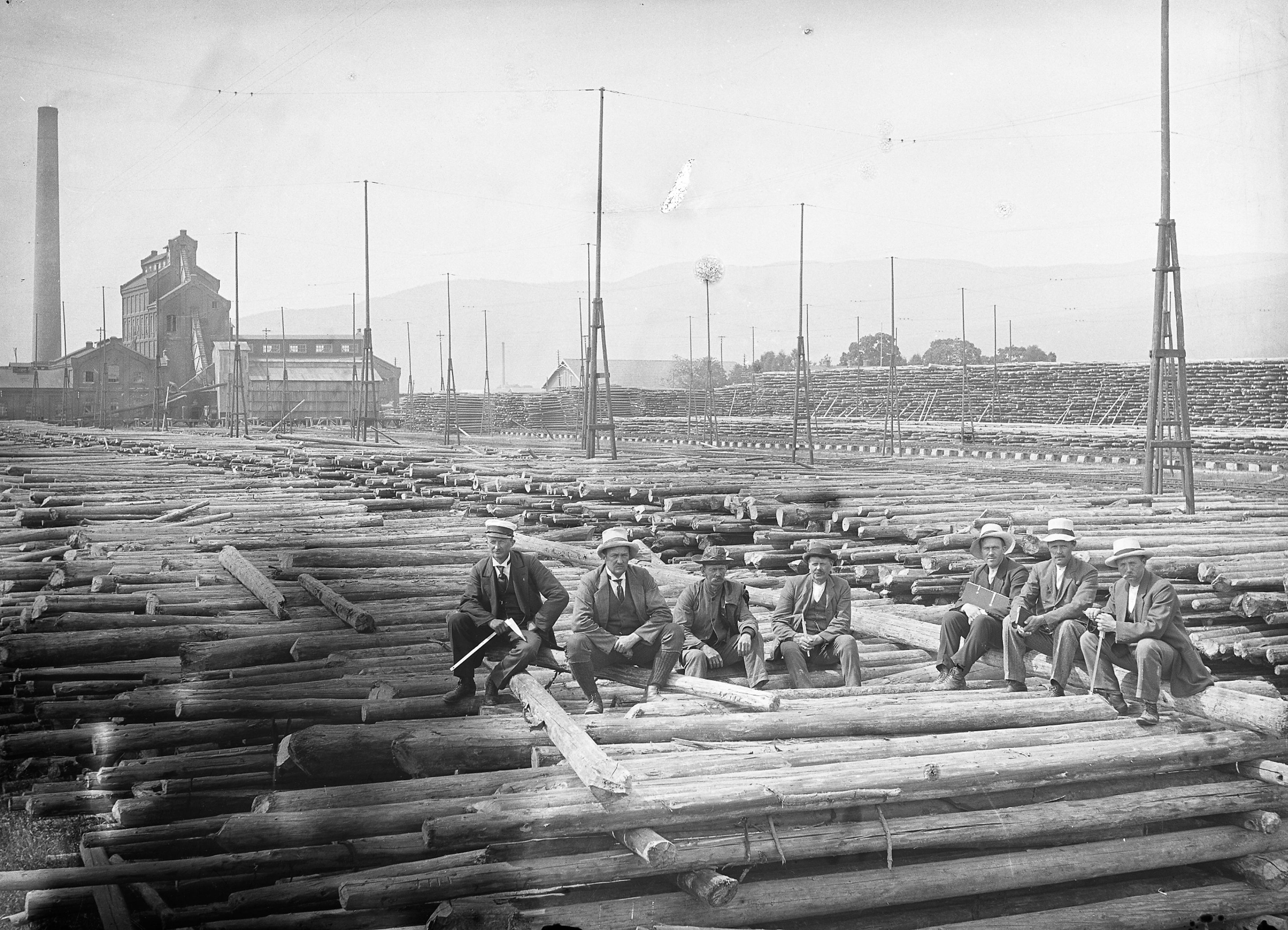 Glassplaten er skannet og behandlet av Fotohuset, Drammen. Tømmermåling ved Gulskogen Cellulose 1910