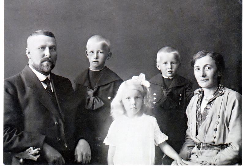 Elling ( f. 1875) og mor Signe Sigrid Anette Sørum (f. 1879) Lier med barna : Ella Astrid Kristine (f. 1910), Lars (f. 1909) og Helge (f. 1912)