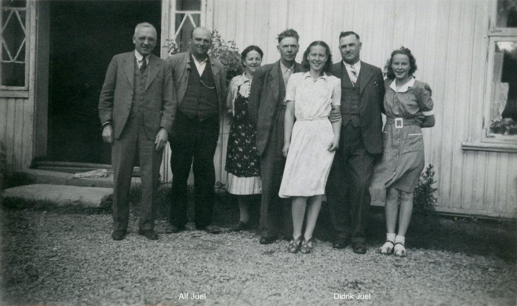 Henjum, Alf Juel, Bergljot og Fredrik Blichfeldt, Greta Blichfeldt ( Ramnæs ), Didrik Juel, Vesla Blichfeldt ( Ryggetangen)