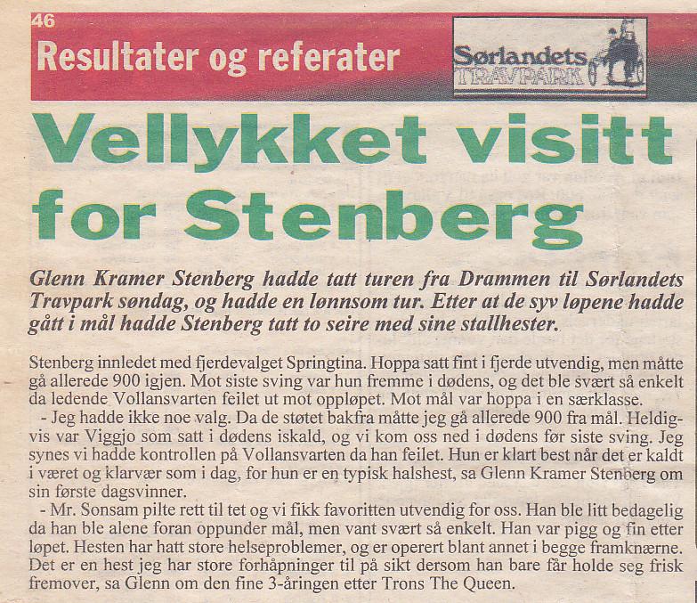 Springover, Vestbygda, travkjøring, frøken Glatina