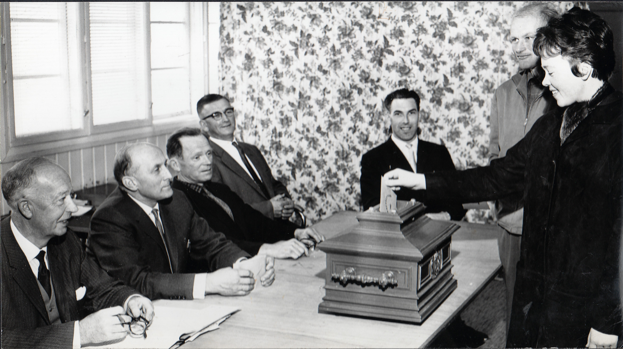 “Kommunevalg 1959 på Vestbygda skole,” Skoger og Konnerud historielags bildesamling, besøkt 26. februar 2026, https://skhist.nettsidetesting.no/items/show/848.