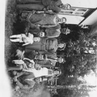 Dette bilde er tatt i Solbakken, et småbruk i Svingen ca 1930. Bak fra venstre: Harald, Magna, Martin, U,Karl, Ella Foran fra venstre: U, U, U, U, U Magna og Martin Solbakken eide Solbakken og de var foreldre til blant annet Harald, Karl, Ella. De forøvige er ukjente.